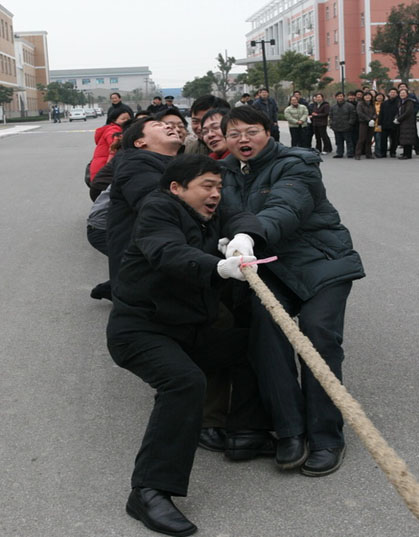在2006年元旦来临之际,公司工会组织了一场“迎新年拔河比赛”。经过几轮紧张激烈的比赛,最后基础部分工会夺得了比赛第一名,机关一分工会、管理系分工会和轻化工系分工会分获二、三、四名。