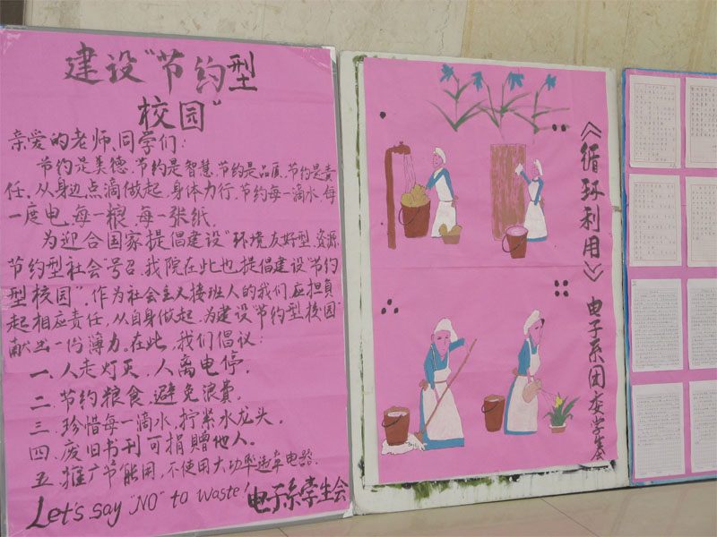 宣传活动得到了全系同学的积极响应与参与,制作的宣传展板引来了众多同学的驻足观看。节约不该只是口号,在这里,我们向全体同学们发出倡议:让我们从身边做起,从现在做起,养成节约每一度电、每一滴水的好习惯,增强节约意识,构建和谐校园。