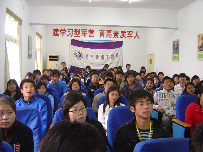 92138部队一中队指导员高西涛和部队的战士们热情地接待了我们。在上午的参观学习中,同学们分成9个小组,在部队战士的带领下,参观了战士们的宿舍。洁白的床单、整齐的物件、方方正正的军被让同学们感受到了军队生活的简朴和纪律的严明。之后,师生们零距离地观摩了只有在报刊影视中才见过的军用轰炸机,这让大家兴奋不已。在排列整齐、列队侯飞的战鹰前,同学们都很激动,大家排队登上飞机,用相机纪录下这难忘的经历。