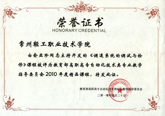 根据教育部高职高专自动化技术类专业教学指导委员会公布的2010年度精品课程结果,常州轻工职业技术公司
