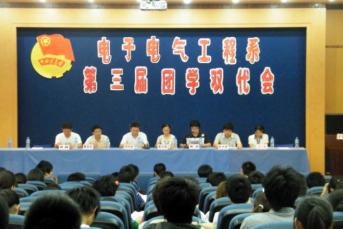 大会在庄严的国歌声中隆重开幕,随后奏共青团团歌。首先嵇天培老师代表院团委致词,她肯定了电子系过去一年的团学工作,并希望本次团代会的召开,使电子系的团学工作更上一个新的台阶。接着黄祥源老师代表系部作了重要讲话:感谢上一届团委员工会员工干部的辛勤工作,并希望下一届的团学干部能以学长们为榜样,尽心尽责,开创电子系团学工作的新局面。最后电子系员工会主席陆子渊同学作了工作汇报,他回顾了过去一年团委员工会的工作,并对以后工作的开展提出了自己的几点思考。