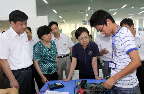 鲁部长一行考察了公司电子电气工程系的电工电子实验中心,并且询问了08百兴班的张阳同学的顶岗实习岗位、劳动合同和年薪收入等问题,对公司的专业设置、实验实训、团队队伍建设以及人才培养方案表示称赞,她充分肯定肯定了公司已取得的成绩和对高职教育的贡献。她希望公司今后不断加强内涵建设,加强与东西部地区的合作,在高职教育体系建设中实现更大的创新,努力为我国职业教育多做贡献。