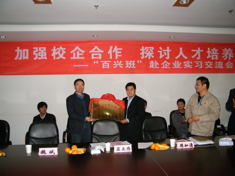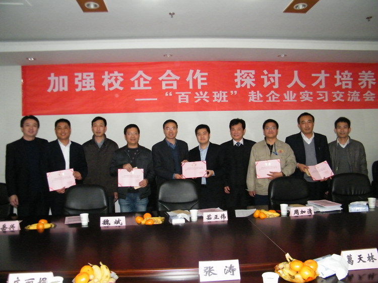 启动仪式开始后,姚庆文主任和周加清副总经理分别介绍了百兴班的教学情况和百兴班员工的前期培养过程。接着,张书记授予百兴集团“校外实习、就业基地”铜牌;公司领导给6位企业嘉宾颁发校外兼职教师聘书;企业嘉宾给百兴班班主