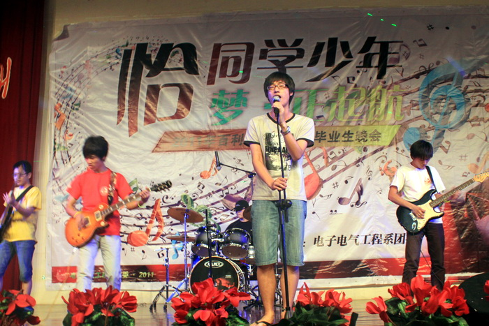 晚会在新起点乐队激情摇滚的《琴弦之歌》中拉开帷幕,活力四射的音乐把这个初夏的夜晚点缀的格外迷人,晚会现场的气氛瞬间被点燃。随后的节目也一个比一个精彩,悠扬的笛声加上优雅伴舞的《神话》,电子系老员工艺术团“dream fly”的《The Dancing Elf》,台上活力迸发,台下火爆热闹,观众手中的荧光棒情不自禁随着音乐有节奏地摇摆着。