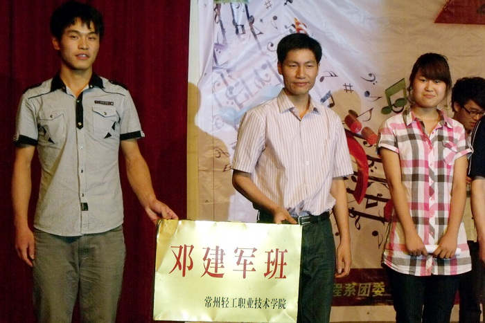 除了精彩的节目外,本次晚会还特别举行了 “邓建军班”交接仪式, 10电子332班荣获10级“邓建军班”,仪式中,新老“邓建军班”班级员工代表分别发言,最后系副主