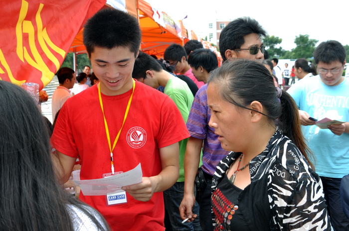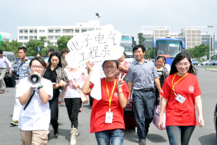 电子系今年接待新生的工作人员分成了若干小组,并进行了详细分工,明确了工作职责。同时,系团委组织的120多名新生接待志愿者也积极参与到这次迎新工作当中,他们身着统一服装,全身心地投入到整个迎接新生、引导新生、安置新生的义务服务活动中,为新生的顺利报到而奔走服务,甚至忘记了吃饭。