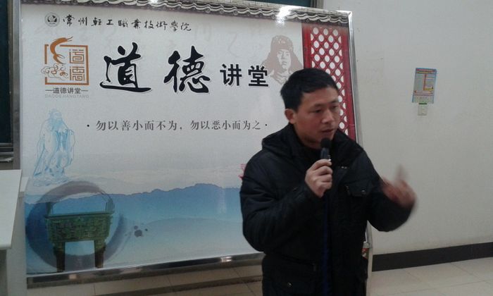 12月19日,电子系再次举行道德讲堂活动,辅导员魏灵水主讲,12级部分同学参加活动。