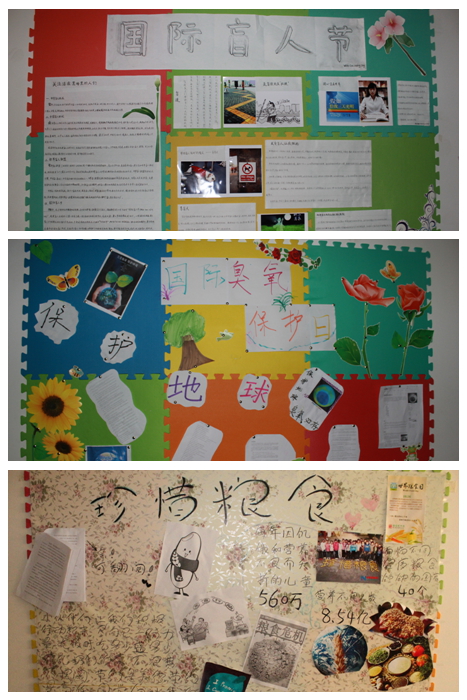 此次活动面向电子系13级各班,要求在设计“主题文化墙”过程中以国际通行的“环境保护日”“国际爱牙日”“世界粮食日”等为主题自选内容,布置主题文化墙,要求设计方案要求新颖独特,同时要有教育性和科普性。在布置过程中使用材料奉行节约的原则,提倡自己动手,扮靓公寓。