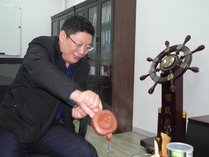 他不喜欢跟政府官员打交道。前几年有人介绍了一笔2000万的地铁配电柜生意,利润丰厚,但是他放弃了,因为他实在不想过那种磕头求人的日子。采访至中午,他招待年近退休的班主任和任课老师,酒都已经倒好了半天了,他只顾讲话竟忘了招呼大家开始用餐;吃饭吃到一半,他才想起把口袋里的一包烟掏出来发给老师们——他不是一个喜欢应酬的人。