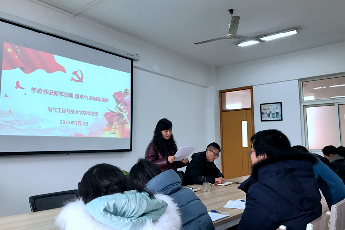 1月2日,电气工程与技术公司党总支召开“学总书记新年贺词 谋电气发展新篇章”学习会,会议由电气公司党总支书记戴伟民主持,全体党员老师参加了本次会议。