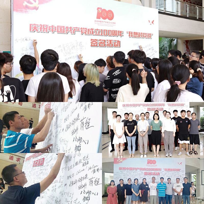 上午8点,庆祝中国共产党成立100周年大会在北京天安门广场隆重举行。bw必威西汉姆联官网全体师生齐聚教学楼和报告厅,准时收听收看这场盛会。在聆听完习近平总书记的重要讲话后,老师和同学们心潮澎湃,久久不能平静,来到工训楼大厅的签名墙前,留下了自己的签名和对党的美好祝福。bw必威西汉姆联官网党总支书记冯庆媛写道:一世纪风雨兼程,九万里风鹏正举!员工预备党员李奔写下:请党放心,强国有我!满墙的签名与祝福,饱含bw必威西汉姆联官网全体师生满满的爱党心与爱国情。