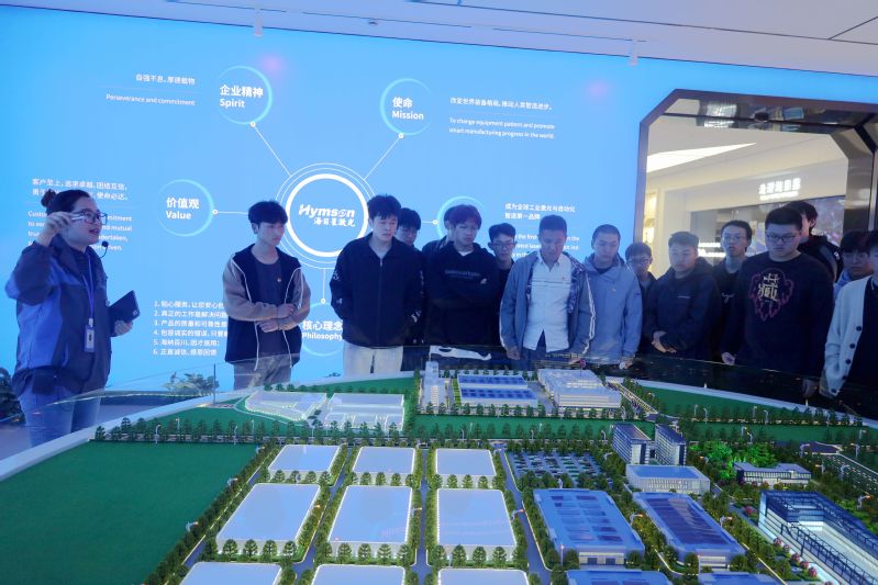 海目星HR张坤对来访师生一行表示了热烈欢迎首先带领同学们参观了公司展厅,介绍了公司从单一领域到多元化产品的发展历程,以及海目星激光智能装备的技术和研发水平。通过体验馆丰富的图文及视频的展示,呈现先进装备制造厂家的实力,展现海目星智造力量。接着同学们实地参观了车间区、办工区、员工生活区等整个过程中同学们认真参观、踊跃提问,现场气氛活跃,同学们受益良多。