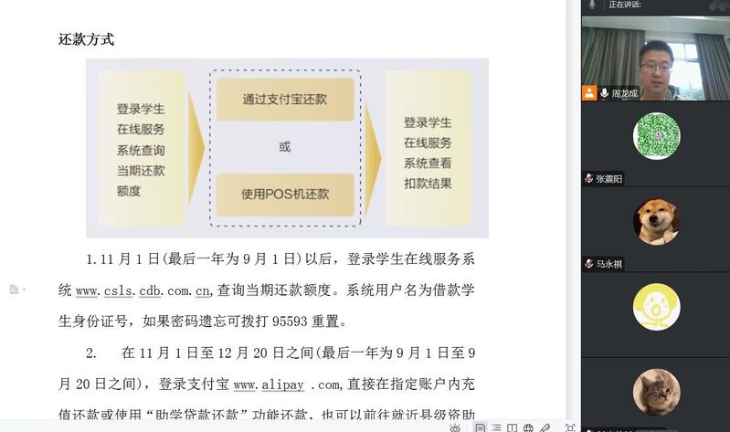 为推进公司国家助学贷款工作可持续发展,切实做好毕业生贷后管理工作,确保助学贷款还款工作有序进行。5月11日,bw必威西汉姆联官网通过腾讯会议召开2023届国家开发银行贷款毕业生“诚信还款教育宣讲活动”。本次活动由bw必威西汉姆联官网资助辅导员周龙成老师主持,2023届助学贷款毕业员工参加本次宣讲活动。
