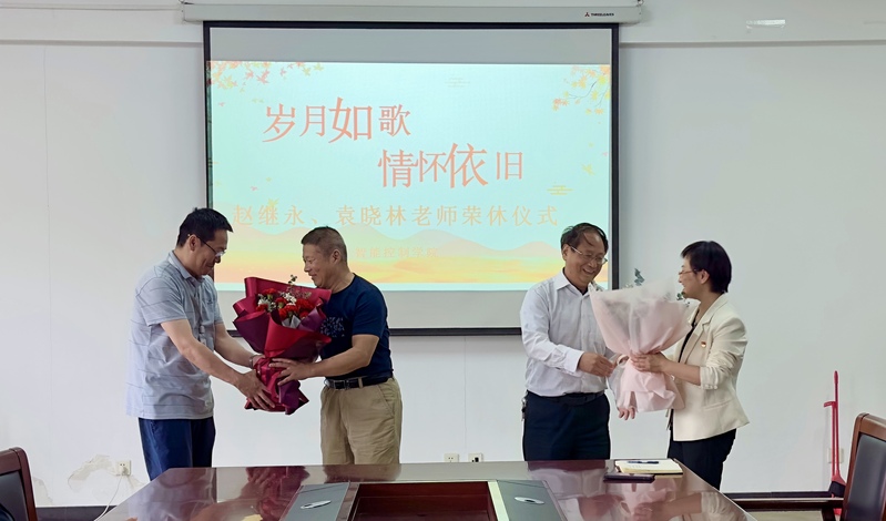 赵继永、袁晓林分享了他们数十年来的从教经验和心得体会,勉励在座教师不忘教师初心,紧跟时代发展,奋斗育人前线。岁月如歌,情怀依旧,在在座老师们的祝福与感动中,全体智控教师为赵继永、袁晓林举行荣休仪式,麻丽娟、蒋正炎向两位老师鲜花,感谢他们多年来为智控公司兢兢业业匠心育人、恭喜他们不忘初心桃李天下、祝福他们未来生活更加幸福美满,情意绵长、奔赴山海,永远是智控一家人。