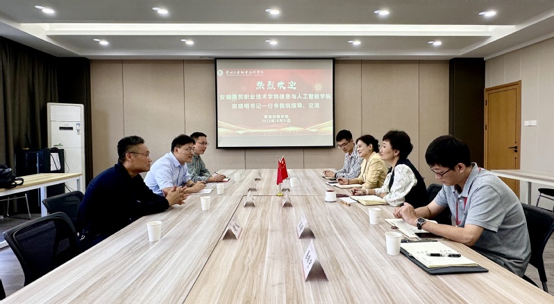 10月31日,安徽商贸职业技术公司信息与人工智能公司党总支书记郑晓明,党总支副书记、副经理周正贵,员工第一党支部书记姚平芳一行来公司交流学习党建工作经验。公司党总支副书记(主持工作)麻丽娟、副书记涂艳群出席活动。本次交流会由麻丽娟主持。