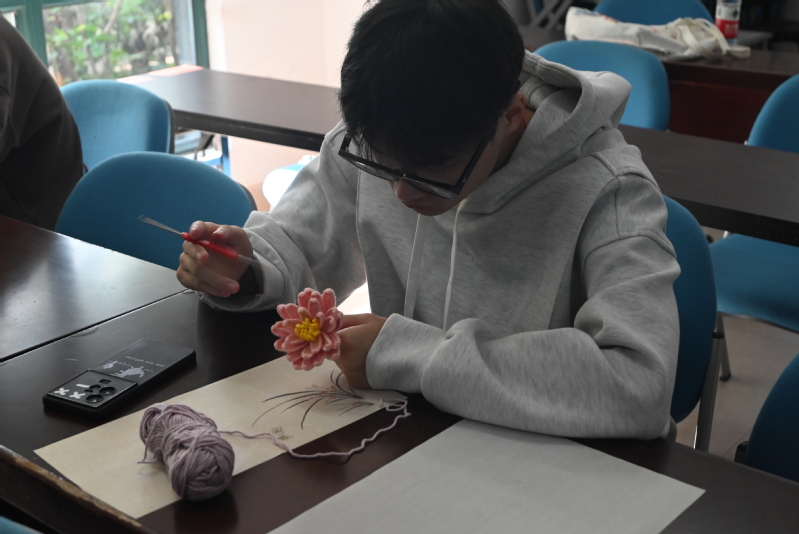 志愿者们走进红梅街道文化站,与盛世名门社区的老年居民共度佳节,得到了社区居民的热烈欢迎,志愿者们在老师的指导下于居民一起学习体验了毛笔书法和艺术编织,共同完成了书法作品和花朵钩织品,现场气氛其乐融融。