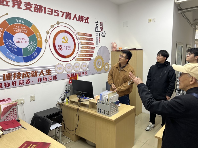 红色驿站作为智能控制公司党团建设与思想政治教育的前沿阵地,借助展板、多媒体宣传等多元化手段,全方位展现了中国共产党引领下工匠精神的发展脉络,以及大国工匠们无私奉献的动人故事。蒋文昌老师一迈进驿站,便被丰富详实的展陈内容深深吸引。参观期间,蒋老师不时停下脚步并主动向同学们询问相关细节。对驿站充分挖掘红色资源、创新教育形式的举措,蒋老师表示,红色驿站既是员工传承红色基因的关键平台,也是公司培育员工工匠精神的生动课堂,对推动人才培养意义重大。
