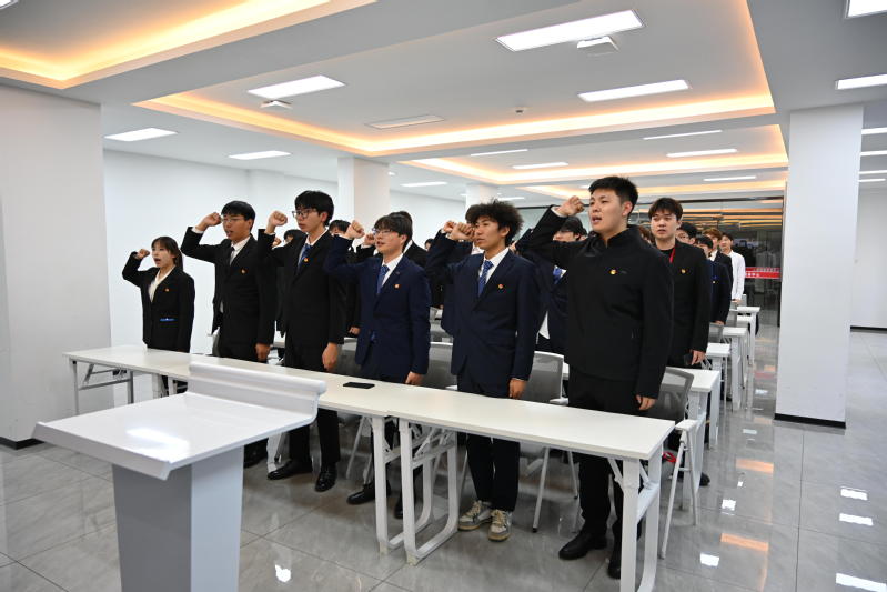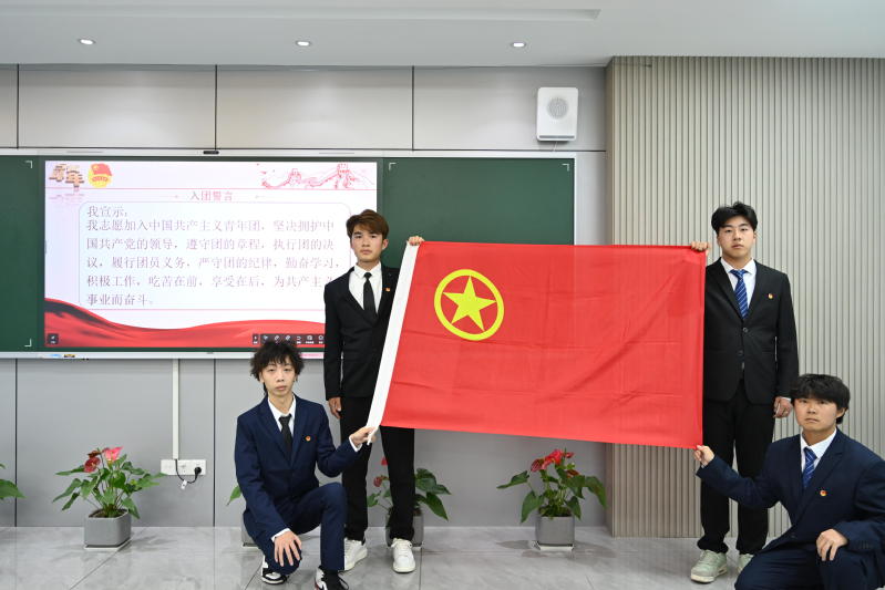 在交流分享环节,工匠团支部优秀员工代表李沐忻结合自身在创新创业大赛的实践与成长经历,分享了对五四精神的理解与感悟。她表示,在专业学习与技能提升过程中,始终以五四精神为指引,秉持精益求精的工匠精神,勇于攻克技术难题、敢于突破创新瓶颈。同时,她号召全体同学以先辈为榜样,在学习中勤于思考、勇于探索,在实践中锤炼本领、增长才干,努力成长为新时代高素质技术技能人才。随后,全体青年学子在领誓人的带领下,重温入团誓词,“我志愿加入中国共产主义青年团,坚决拥护中国共产党的领导……”一句句誓言字字千钧,掷地有声,表达了团员青年对共青团组织的无限忠诚和为共产主义奋斗终身的坚定决心。