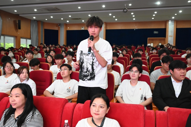 团课以我国前沿科技成就为切入点,主讲人李沐忻娓娓道来:“天宫”空间站实现全电力循环系统与量子通信终端协同运行,嫦娥六号完成人类首次月球背面采样返回,EAST装置以1.2亿摄氏度等离子体运行403秒刷新世界纪录,FAST射电望远镜捕获120亿光年外的星系信号……一组组震撼数据背后,是我国35岁以下科研人员占比达61.03%的青年生力军。“他们在实验室熬过长夜,在发射场迎接黎明,用青春热血浇筑科技强国基石。”李沐忻的讲述让现场师生深切感受到青年在科创浪潮中的中流砥柱作用。