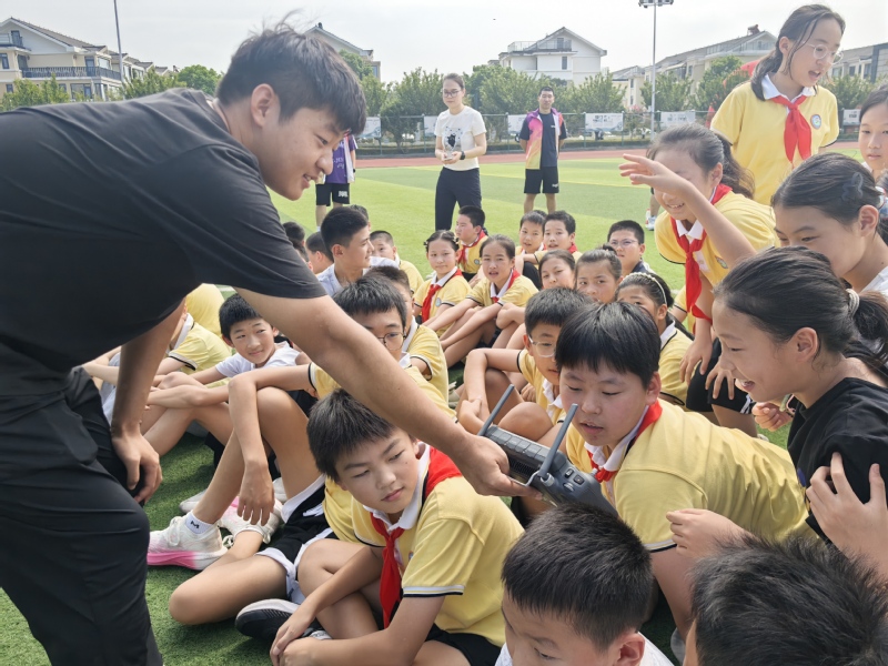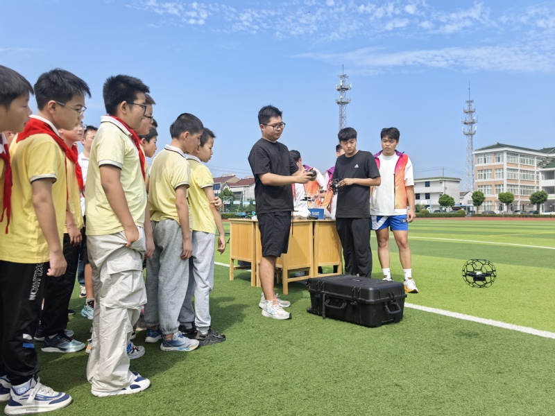 随后的飞行演示掀起高潮。在公司操场,志愿者操控无人机完成悬停、360 度盘旋、低空穿梭障碍物等动作,引得小朋友阵阵欢呼。志愿者边操作边讲解飞行安全规范,孩子们兴致勃勃,脸上满是好奇与向往。
