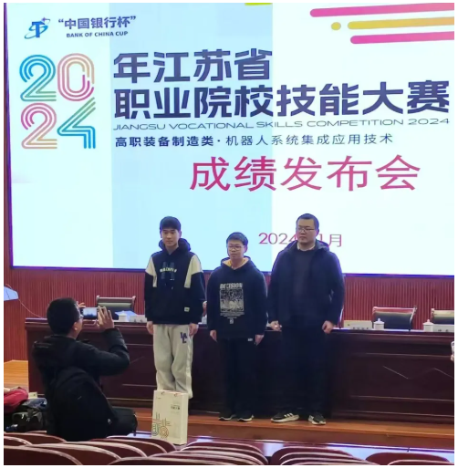 “工欲善其事,必先利其器”。踏入校园不久,成诚便一头扎进了工业机器人技术的知识海洋,开启了他在技能竞赛领域的学习历程。2022年,苏州市职业院校技能大赛成为他崭露头角的起点,在工业机器人技术应用赛项中,他凭借着对知识的初步掌握和对技能的刻苦钻研,荣获市赛二等奖,初露锋芒。