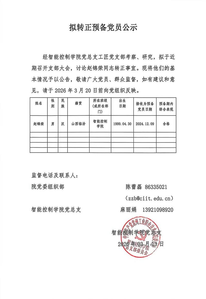 拟转正预备党员公示