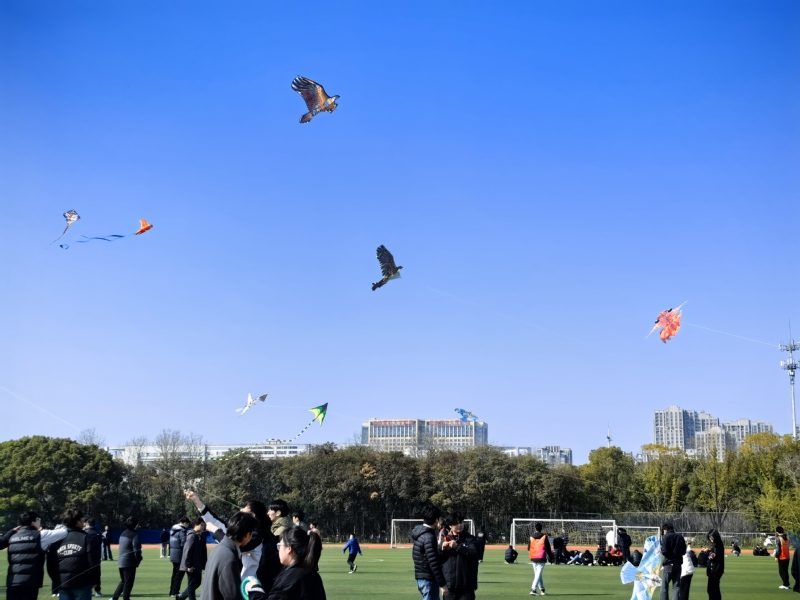 随着和煦春风拂面而来,放飞环节正式拉开序幕。大家纷纷带着亲手制作的风筝来到操场中央,一手握线轴、一手拉风筝线,迎着春风奔跑、放线、牵引,一系列动作娴熟有序。五彩斑斓的风筝次第升空,在蔚蓝的天空中自由翱翔、摇曳生姿,与春日的校园、奔跑的身影相映成趣,一只只高飞的风筝,承载着青春的梦想、亲子的温情与师生的情谊,更寄托着大家对未来的无限憧憬。